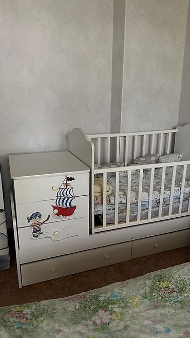 Детская кроватка с интегрированным комодом и выдвижными ящиками. Комод