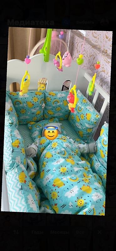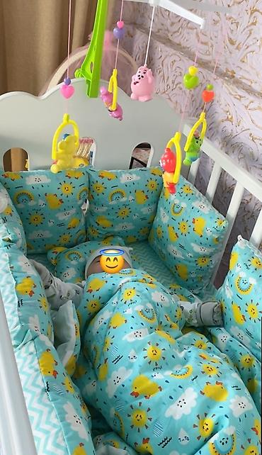 На фото также показан вариант оформления с бортиками, постельным бельём и мобилью (для наглядности комплектации спального места).