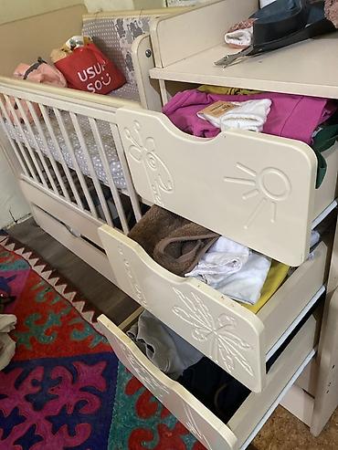 Детская кроватка-трансформер с комодом и ящиками