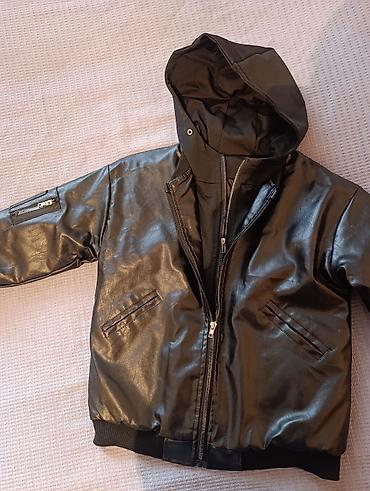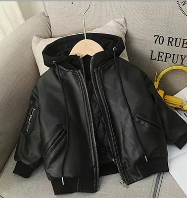 Детская куртка-бомбер черного цвета с капюшоном.