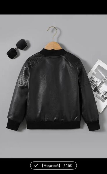 Детская куртка-бомбер из искусственной кожи - Цвет: черный - Рост