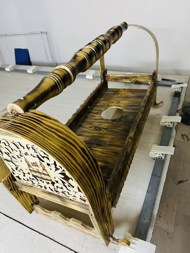 Для девочкиДля мальчикаДеревянная детская люлька с резным орнаментом. Люлька имеет подвесную конструкцию, что позволяет легко укачивать ребенка. На боковых панелях и дуге нанесены декоративные узоры. Подходит для новорожденных и младенцев.
