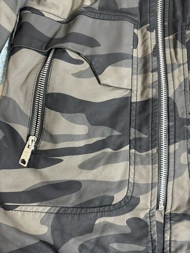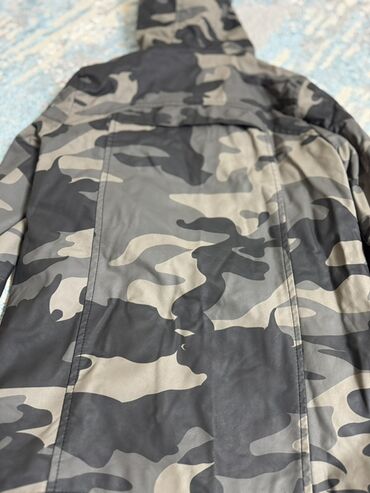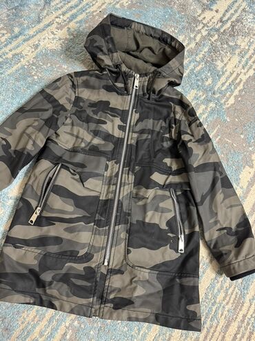 Детская парка с капюшоном, камуфляжная расцветка (серо‑черный хаки).