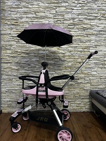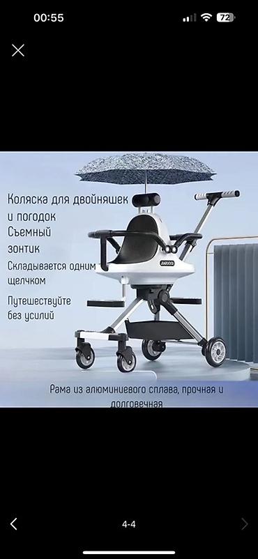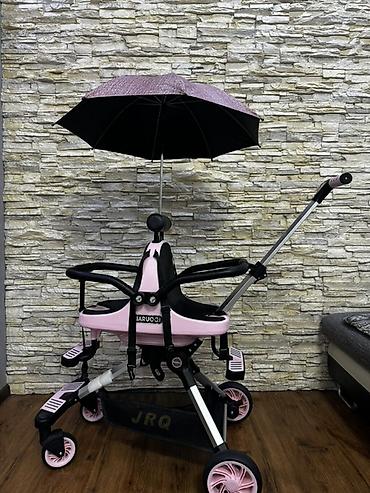 - Съёмный зонт‑козырёк от солнца и лёгкого дождя.