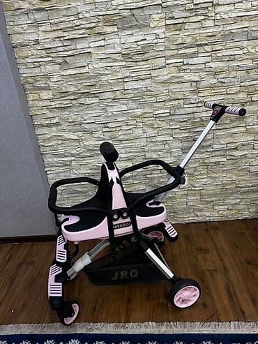 Детская прогулочная коляска‑велосипед (тип «толокар») JRQ, розово‑черная.