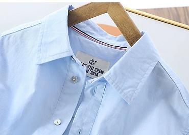 Детская рубашка для мальчиков (можно и девочкам) с длинным рукавом тонкий флис. - Модель: цвет-блок (голубой верх и молочно‑белый низ), классический отложной воротник - Застежка: металлические кно...