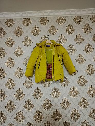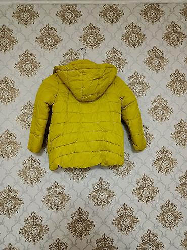 Детская стеганая куртка с капюшоном, ярко‑желтого цвета.