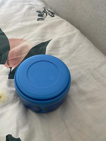 Портативная беспроводная колонка (цилиндрическая форма, синие резиновые накладки и тканевая решётка). Основные особенности: - Поддержка Bluetooth для воспроизведения музыки со смартфона или ноутбу...