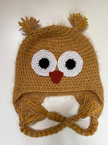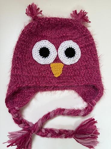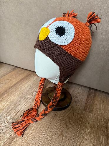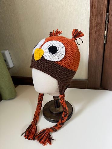 - Авторские шапочки с ушками и большими вязаными глазками, клювом и кисточками.