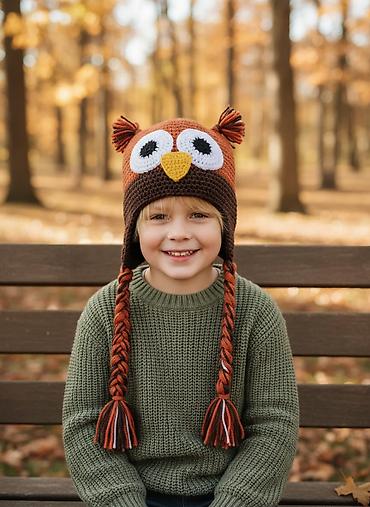 Вязаные детские шапки-совушки - Авторские шапочки с ушками и большими