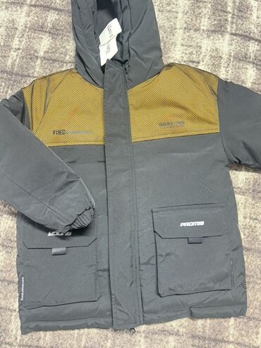 Обе куртки рассчитаны на холодную погоду: ветро‑ и влагозащитный верх, удобные карманы, капюшоны для защиты от непогоды. Подходят для активных прогулок и повседневной носки. Размер на бирке: 130 (ориентир по росту ребёнка). Цвета: серый с горчичным и ярко‑синий.