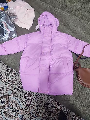 Новая детская зимняя куртка-пуховик, цвет розово‑лиловый (розово-фиолетовый). размер 140см