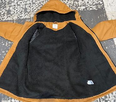 - Утепление: густой меховой подклад из мягкого черного «флисового»/шервпа-материала по всему корпусу и капюшону.
