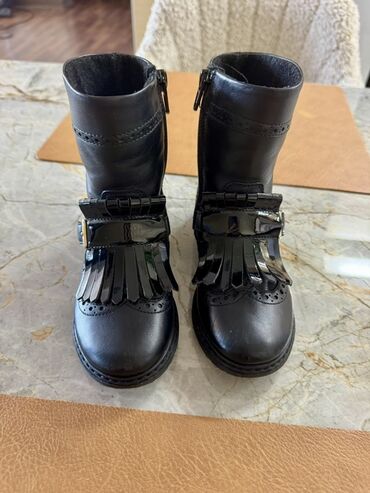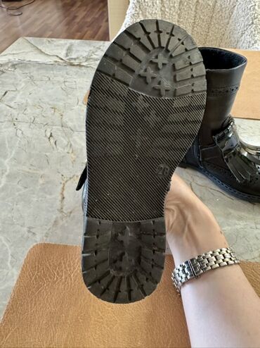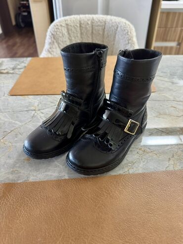 Черные детские ботинки-челси. Было куплено за 3500сом,носили только 1сезон. - Размер: 35 (указан на коробке). - Материал верха: гладкая кожа. - Подкладка: теплая (виден мягкий мех/байка внутри) — ...