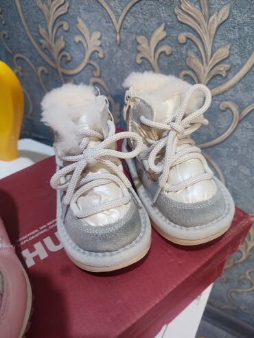 Представляем детские ботинки в двух вариантах: нежно-розовые с блестящими элементами и звездами, а также светлые ботинки с меховой отделкой. Розовые ботинки оснащены быстрой шнуровкой на резинке с фиксатором и боковой застежкой-липучкой для удобства обувания. Декоративные звезды на розовых ботинках придают им игривый вид. Светлые ботинки имеют классическую шнуровку и молнию сбоку, а также мягкую меховую подкладку, обеспечивающую тепло и комфорт. Обе пары ботинок подходят для повседневного использования в прохладную погоду.