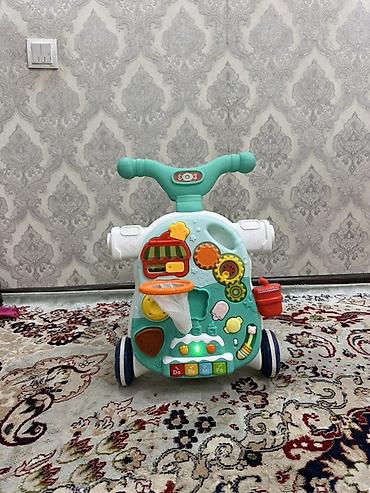 - Функции: ходунки с ручкой для первых шагов, каталка с сиденьем, игровой центр.