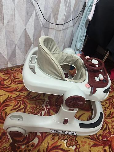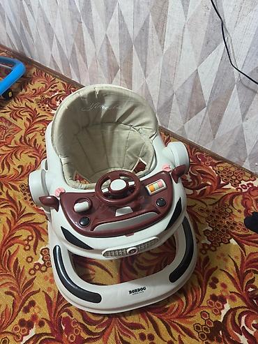 Подходят для малышей, осваивающих первые шаги: поддержка корпуса, развивающие элементы, безопасность за счет широкой рамы и демпферов по краям. На корпусе маркировки: Bobdog Since 1988, GRAPHICC RA, на спинке — надпись Aineile.