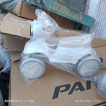 - Каталки в виде скутера/мотоцикла с широкими тихими колесами. Устойчивые, с удобным сиденьем и рулем, подходят для первых поездок по дому и на улице. Цвета: белый, розовый.