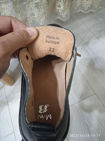 Детские кожаные ботинки-чукка - Размер: 32 (маркировка внутри) - Производство: Portugal (Made in Portugal) - Материал верха: натуральная зернистая кожа, черный цвет - Подкладка и стелька: кожа нат...