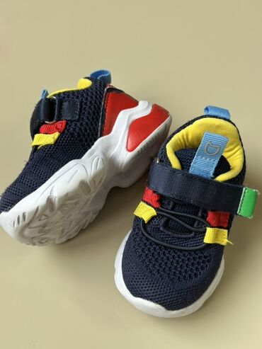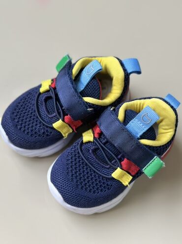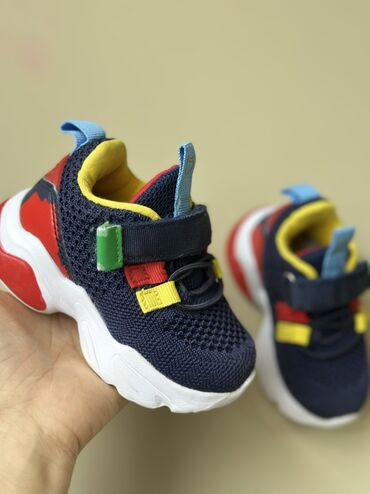- Цвет: темно-синий верх с яркими акцентами — желтый, красный, зеленый и голубой; белая массивная подошва.