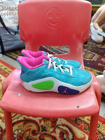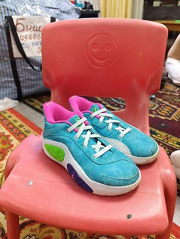 - Яркий дизайн: бирюзовый верх, контрастная розовая подкладка, белые шнурки, вставки салатового и фиолетового цветов, декоративный логотип на пятке.