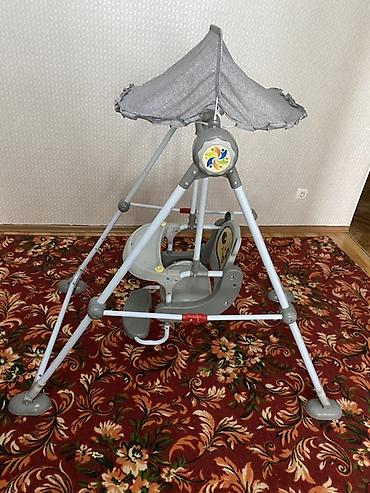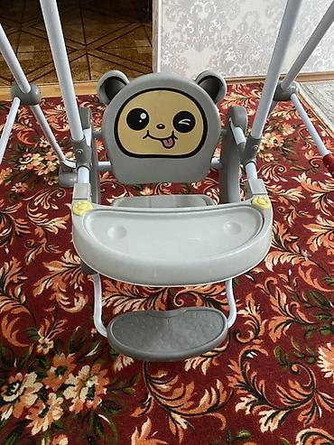 Детские напольные качели со столиком и козырьком.Изъяны можно увидеть на четвертом фото