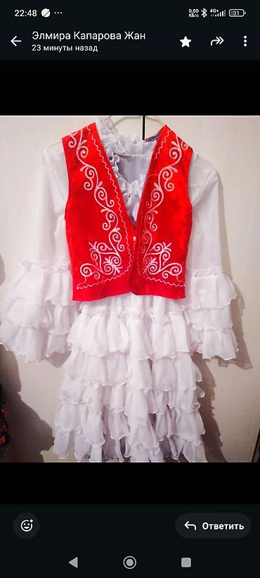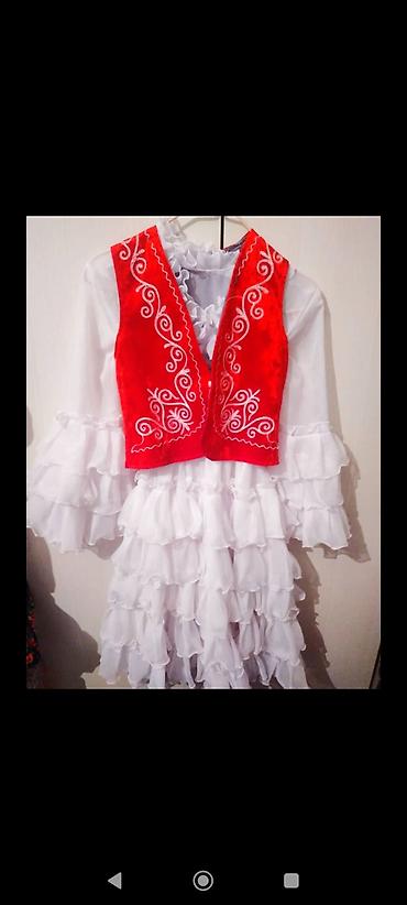Детские нарядные и сценические платья - Традиционные костюмы: белое платье с многослойной юбкой и стоячим волан-воротником, комплектуется красным бархатным жилетом с вышивкой и декоративными пугов...