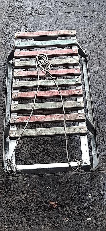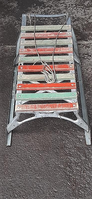 Размеры по фото: длина около 85–95 см, ширина около 35–40 см. Материалы не боятся мороза, деревянные планки крепятся на болтах/заклёпках. Отличный вариант для зимних прогулок.