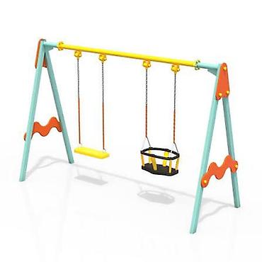 - Модели на выбор: классические двух- и трёхместные подвесные качели, вариант с безопасными корзинчатыми сиденьями для малышей, а также «гнездо» на цепях.
