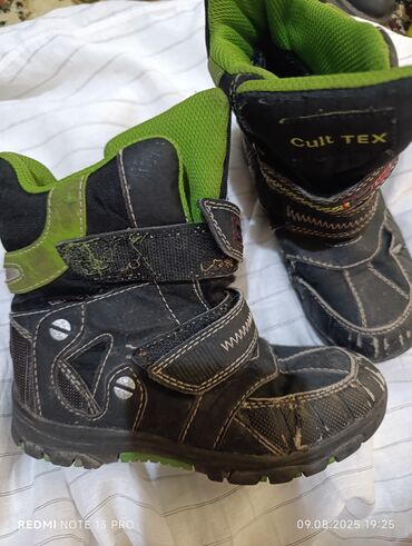 Детские зимние ботинки Cult TEX в черном цвете с яркими салатовыми вставками. Оснащены двумя ремешками на липучках для надежной фиксации и легкого надевания. Подошва имеет выраженный протектор, обеспечивающий хорошее сцепление. Эти ботинки подойдут для активных прогулок в холодную погоду.
