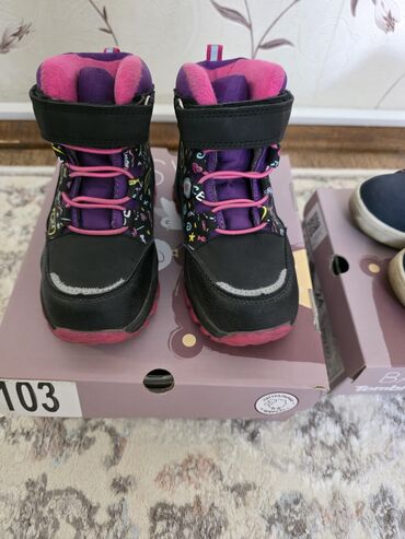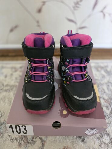Подойдут для зимы и межсезонья: держат тепло, защищают от влаги, удобная фиксация и цепкая подошва для активных прогулок. Яркий дизайн с принтом и контрастными шнурками.