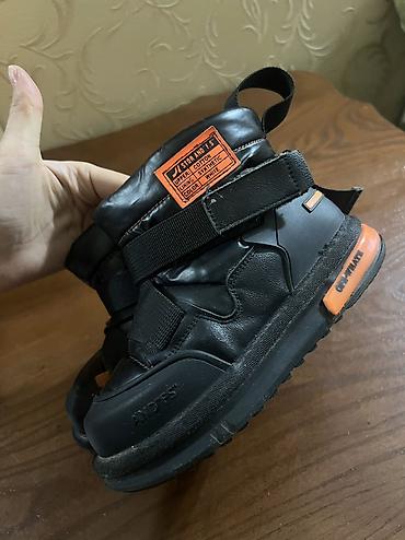 - Верх: синтетический материал с плотной стежкой и влагозащитной обработкой. На язычке яркая оранжевая нашивка с характеристиками.
