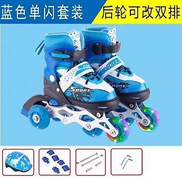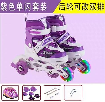 Оригинальные ролики трёх рацветок,размеры от S -31-34, и М -35-38.В комплект входит вместительная сумка.Оригинальные наколенники, подлокотники , перчатки и шлем. Калёса гелевые без шумные и цвет...