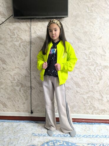 Детский неоново‑лаймовый бомбер на молнии. Бренд " Pelican " -