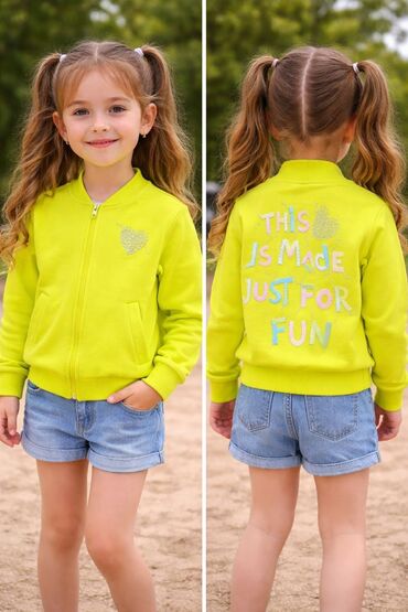 Детский неоново‑лаймовый бомбер на молнии.