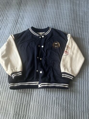 Идеален для прохладной погоды, выглядит как классический университетский бомбер. Подходит для мальчика или девочки. Размер ориентировочно детский (смотрите по фото пропорций и ширине плеч).