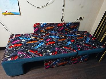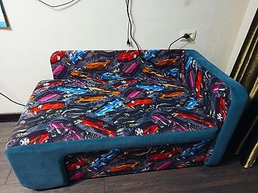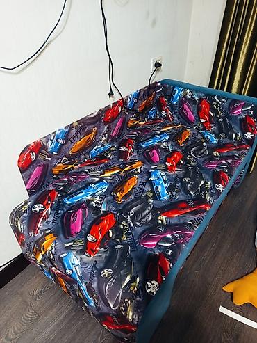 Продаю два дивана в хорошем состоянии, Детский - 8000с, в раскрытом виде Коричневый - 18000, 92. Детский раскладной диван с ярким принтом «спорткары».