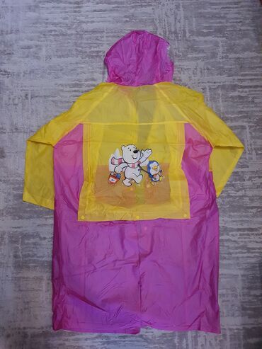 Детский дождевик с капюшоном, яркий двухцветный (желтый/розовый), на возраст 7-10 лет, 800 сом.