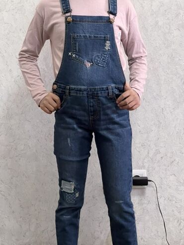 - Модель: классический полукомбинезон на регулируемых лямках с металлическими пряжками.