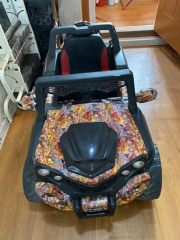 Электрический детский багги с ярким камуфляжным принтом, модель A-6000, предназначен для детей. Оснащен большими колесами с дисками под хром, что обеспечивает хорошую проходимость и устойчивость. Внутри салон с водительским сиденьем и рулевым колесом, имитирующим приборную панель с двумя циферблатами. Электромобиль имеет передние фары и задние фонари, добавляющие реалистичности и безопасности. Идеально подходит для игр на открытом воздухе, развивая координацию и воображение ребенка. Нужно заменить батарейку