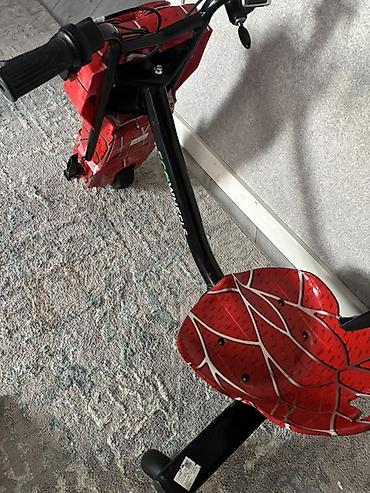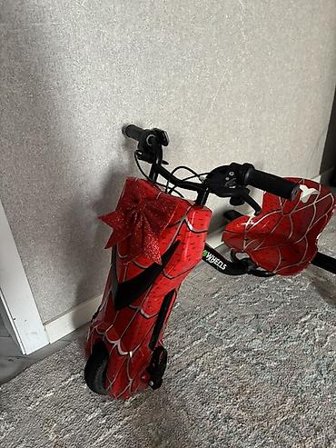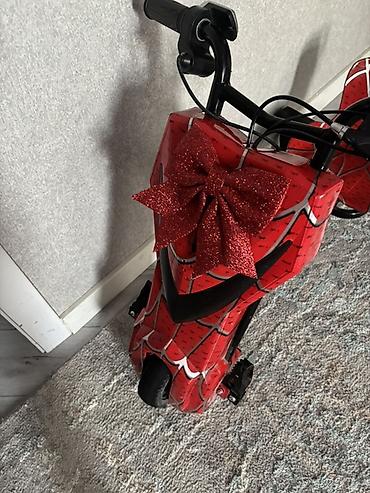 Детский электрический дрифт‑кар (электротрицикл) с ярким красным принтом в стиле «паутинок».