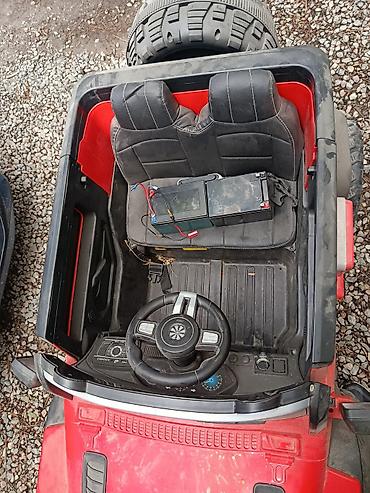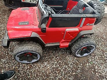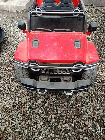 - Кузов в стиле джипа, красный цвет, массивный бампер, декоративные элементы «канистры» и запаска сзади