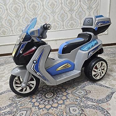 Продаётся крутой детский электромотоцикл в современном спортивном дизайне. Выполнен в эффектном сочетании синего, чёрного и серебристого цветов — выглядит как настоящий байк!