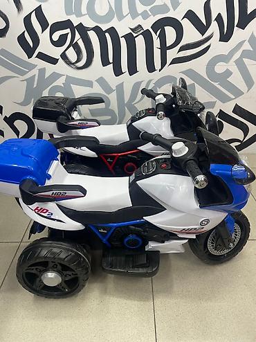 Детский электрический мотоцикл трицикл - Реалистичный дизайн в стиле туристического эндуро: агрессивная передняя оптика, ветровое стекло, зеркала, имитация защитных дуг и выхлопа. - Три колеса для...