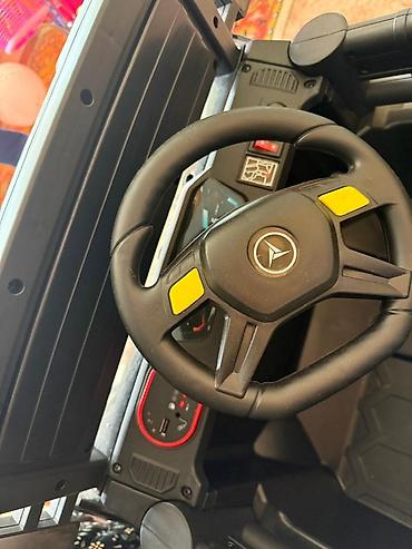 - Управление: руль с звуковыми кнопками; педаль газа; переключение вперед/назад. Предусмотрена возможность родительского пульта (гнездо под приемник/кнопки управления на панели).
