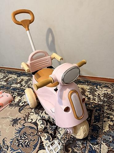 Детский трехколесный электрический мотоцикл-каталка со съёмной родительской ручкой.