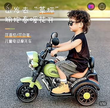 Идеально для первых самостоятельных поездок ребенка: электромотоцикл для эффектных прогулок и велосипед для обучения езде с поддерживающими колесами.