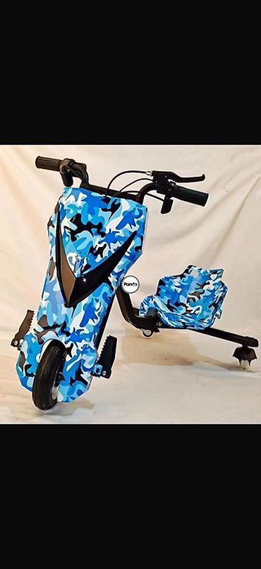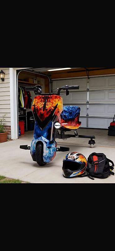 Детский электромотоцикл-трицикл - Тип: электрический трицикл для детей - Дизайн: спортивный супербайк, яркий металлизированный красный цвет, аэродинамические обтекатели, «выхлопы» по бокам, панель...