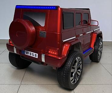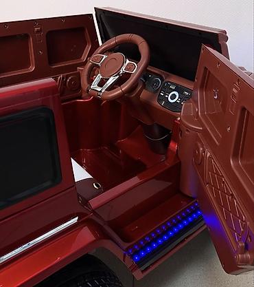 Детский электромобиль-джип в стиле Mercedes G‑Class - Кузов: реалистичный внедорожный дизайн, черный глянец, декоративная «запаска» на двери багажника, серебристые пороги, крупные литые колеса. - ...