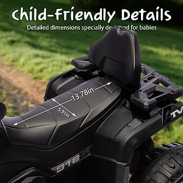 - Габариты квадроцикла: 37.40" x 21.65" x 22.05" (95 x 55 x 56 см).